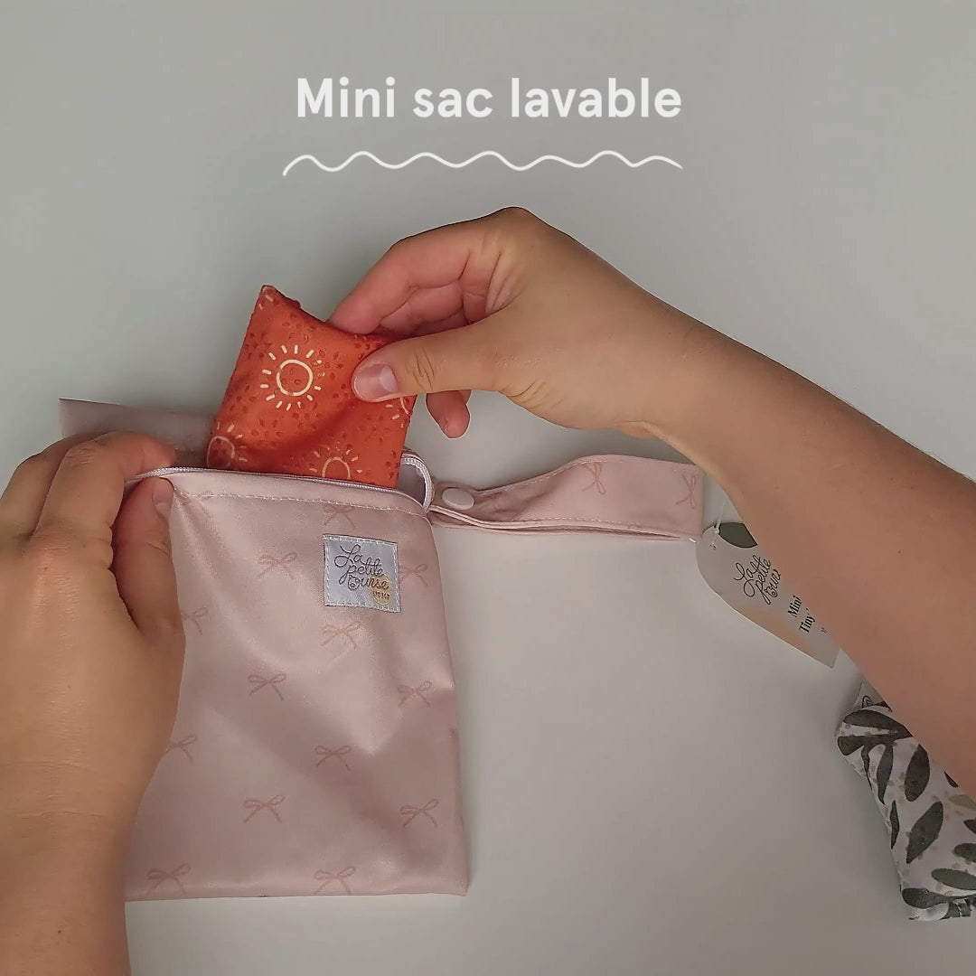 J'adore ce petit sac, je l'utilise pour y mettre des lingettes lavables mouillées pour s'en servir au restaurant, milieux publics, etc. Très pratiques!