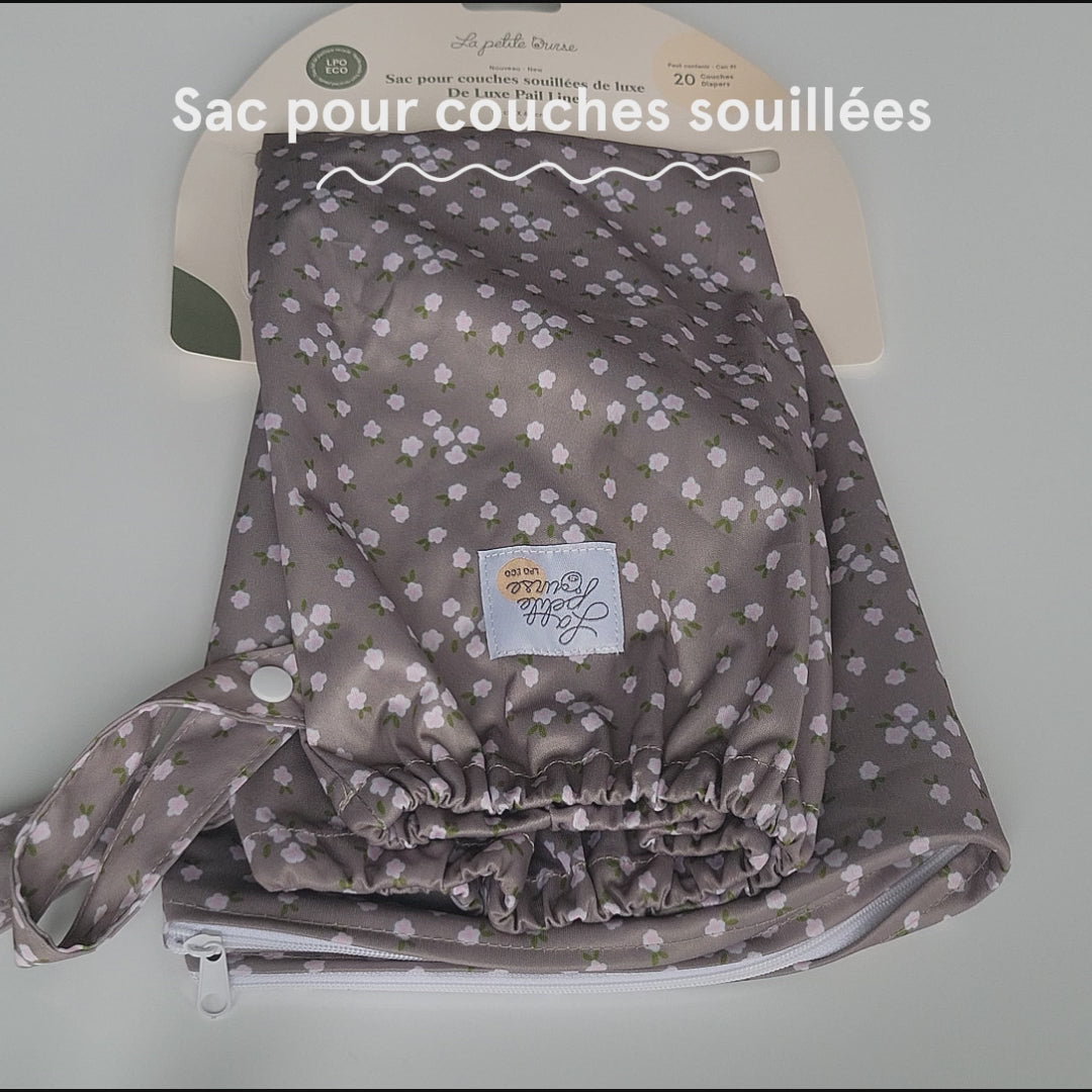 Sac résistant fabriqué de polyester recyclé étanche pour disposer de vos couches souillées après utilisation. Chaque sac peut contenir environ 20 couches. Le sac est muni d’un élastique pouvant être placé dans un sceau pour couches souillées ou accroché à l’aide de ses 2 ganses.