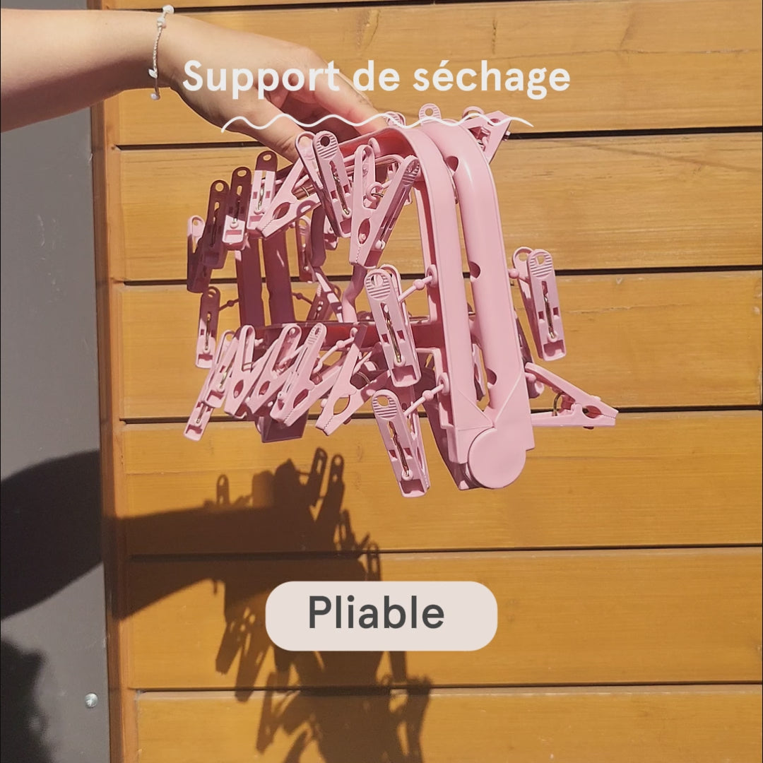 Support de séchage pratique et compact Parfait pour faire sécher tes couches lavables, inserts, petits vêtements ou bas de bébé. Ce support, avec tête pivotante te permet de faire sécher plusieurs articles en même temps, que ce soit à l’intérieur ou directement au soleil. Léger, pliable et facile à suspendre où tu veux — un vrai allié au quotidien!